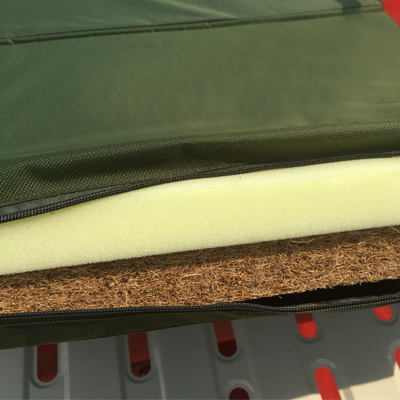 - Đệm có 2 lớp: Lớp dưới là xơ dừa, lớp trên là mút