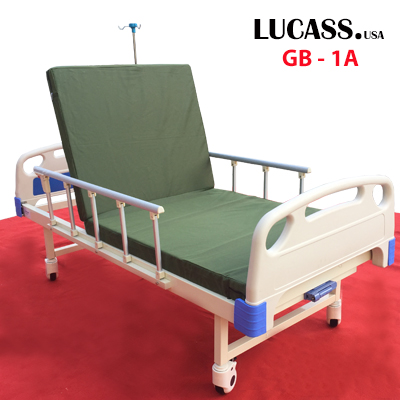 Giường y tế - giường bệnh nhân Lucass GB-1A là giường có 1 tay quay để nâng hạ đầu, dùng cho người ốm, người khuyết tật hay người bình thường hay ngồi đọc sách, xem TV tại giường.