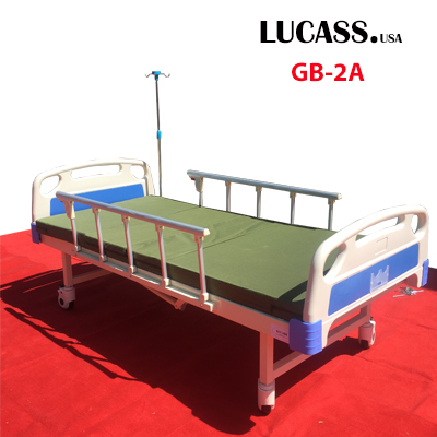 Tron bộ giường y tế 2 tay quay Lucass GB-2A gồm: Giường, đệm, lan can, cọc truyền dịch
