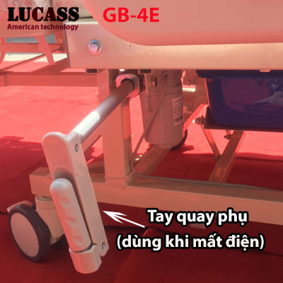 Giường có điều khiển để thực hiện các chức năng trên. Khi mất điện có thể dùng tay quay phụ.