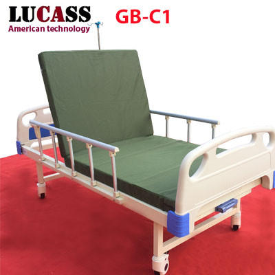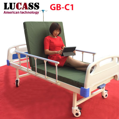 Giường y tế - giường bệnh nhân Lucass GB-C1 là giường có 1 tay quay để nâng hạ đầu, dùng cho người ốm, người khuyết tật hay người bình thường hay ngồi đọc sách, xem TV tại giường.