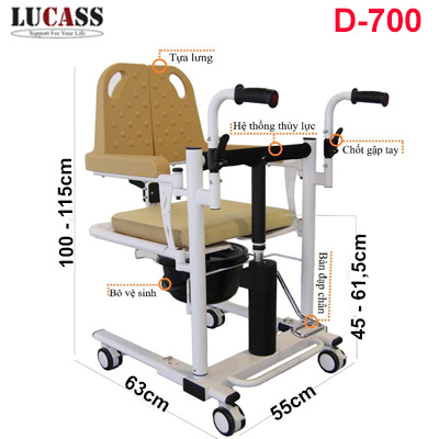 Xe di chuyển bệnh nhân Lucass D-700 dùng để di chuyển người ốm, người bệnh, người liệt từ giường ra ghế, đi vệ sinh, đi tắm và phục vụ cho các mục đích sinh hoạt khác.
